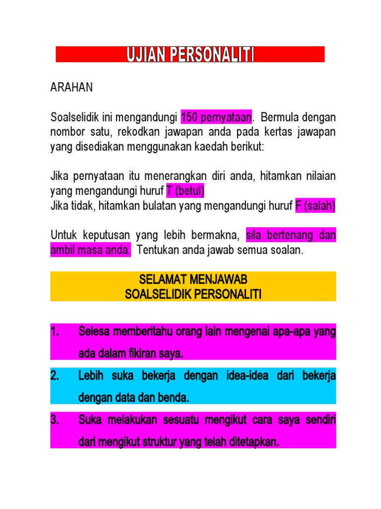 Soalselidik Personaliti Minat Kerjaya Sidek Noah Lcd Pdf